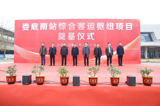 2月28日上午,婁底南站綜合客運樞紐項目奠基儀式在高鐵南站東側(cè)項目現(xiàn)場舉行。市政協(xié)一級巡視員易南斌宣布項目奠基,市人民政府副秘書長鄒定源主持奠基儀式,市交通運輸局黨組成員、副局長扶林,市創(chuàng)發(fā)集團黨委書記、董事長劉建,黨委委員、副總經(jīng)理肖小波,萬寶投資集團董事長梁養(yǎng)賢、總經(jīng)理徐業(yè)波,市道路運輸服務中心主任毛建輝,以及創(chuàng)發(fā)集團、萬寶投資集團、有關建設單位、監(jiān)理單位代表參加奠基儀式。