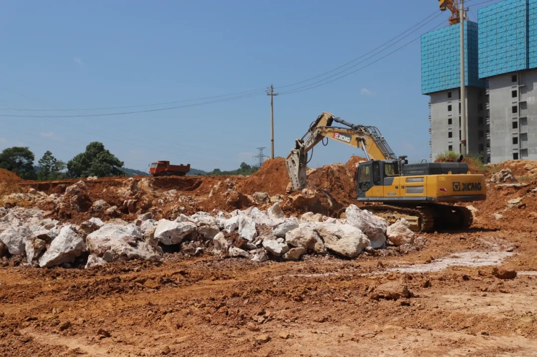 7月14日中午,萬寶新區(qū)黨委副書記、管委會主任肖雄杰,萬寶投資集團(tuán)總經(jīng)理徐業(yè)波,率項(xiàng)目前期部、工程管理部相關(guān)負(fù)責(zé)人,冒著酷暑,深入湘中大道與天華路東南角場平工程施工現(xiàn)場,實(shí)地解決施工過程中存在的問題和困難。肖雄杰要求,施工方要在確保安全和質(zhì)量的前提下,克服困難,抓緊施工,按時完成施工任務(wù),交付場地。該項(xiàng)目位于湘中大道與天華路交匯處東南角,2020年下半年進(jìn)場施工,工程造價約380萬,土方挖方工程量約20萬,預(yù)計本周竣工并交付場地。該項(xiàng)目在土方挖掘過程中,出現(xiàn)了土中含有大量石頭的情況,對施工進(jìn)度產(chǎn)生了一定影響,但是經(jīng)過領(lǐng)導(dǎo)現(xiàn)場調(diào)度、各部門協(xié)調(diào)配合以及施工方全力以赴,仍確保了工程的既定完成時間。